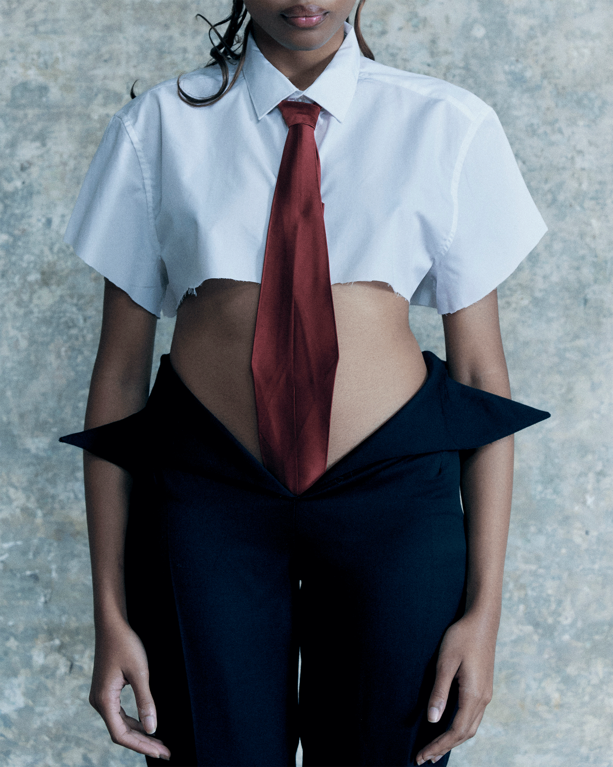 Nothing is ever new. In collection i, classic menswear tailoring techniques are used to merge the body with a silhouette appropriate of womenswear. Anon Binaire uses sustainably sourced materials of the highest quality, opting to avoid plastics through the use of silk, wool, and cotton.